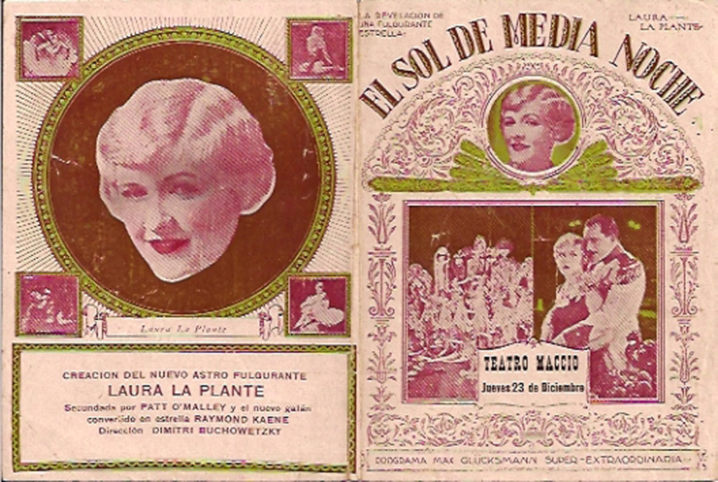 - El sol de medianoche (The Midnight Sun, 1926). Estados Unidos. Dirección: Dimitri Buchowetzki. Protagonizada por Laura La Plante, Pat O'Malley, Michael Vavitch, Raymond Keane, Earl Metcalfe, George Siegmann, Arthur Hoyt, Medea Radzina, Nicholas Soussanin, Cesare Gravina, Nina Romano, Alberto Prisco, George B. Williams. Distribuidora Productora y Distribuidora Universal Pictures. Drama. Melodrama Cine mudo. Blanco y negro. Duración: 90 minutos.